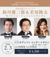 将来性豊かな若手歌手を応援するプロジェクト、今回はバリトンの鈴川慶二郎、若尾隆太を特集します。二人は共に玉川大学芸術学部、一学年違いで同じ師の元に学び(若尾が上)、卒業後も同じ藤原歌劇団に所属してお互い肩を叩きあいながら芸を磨く、戦友同士。今回はバリトンの有名アリアの競演や、ヴェルディやベッリーニのオペラから珍しいバリトン同士の二重唱をご披露します。同じ声種でも歌い手が違えばまったく違う事を実感できることでしょう。今後の活躍が楽しみな二人の現在地を、歌曲やアリア、二重唱でご堪能ください。ピアノは、華やかな演奏でステージを彩る齋藤菜緒でお贈りします。